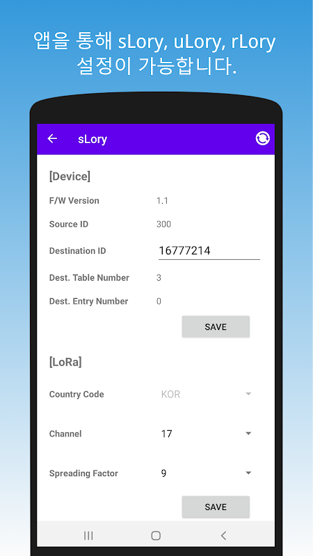 यदि आप एक LoRa कनवर्टर (sLory, uLory, rLory) उत्पाद को सेटअप मोड में संचालित कर रहे हैं, तो इस ऐप को इंस्टॉल किए गए स्मार्टफोन के USB पोर्ट पर स्थापित किया जा सकता है, आप उत्पाद की सेटअप जानकारी की जांच या परिवर्तन कर सकते हैं।