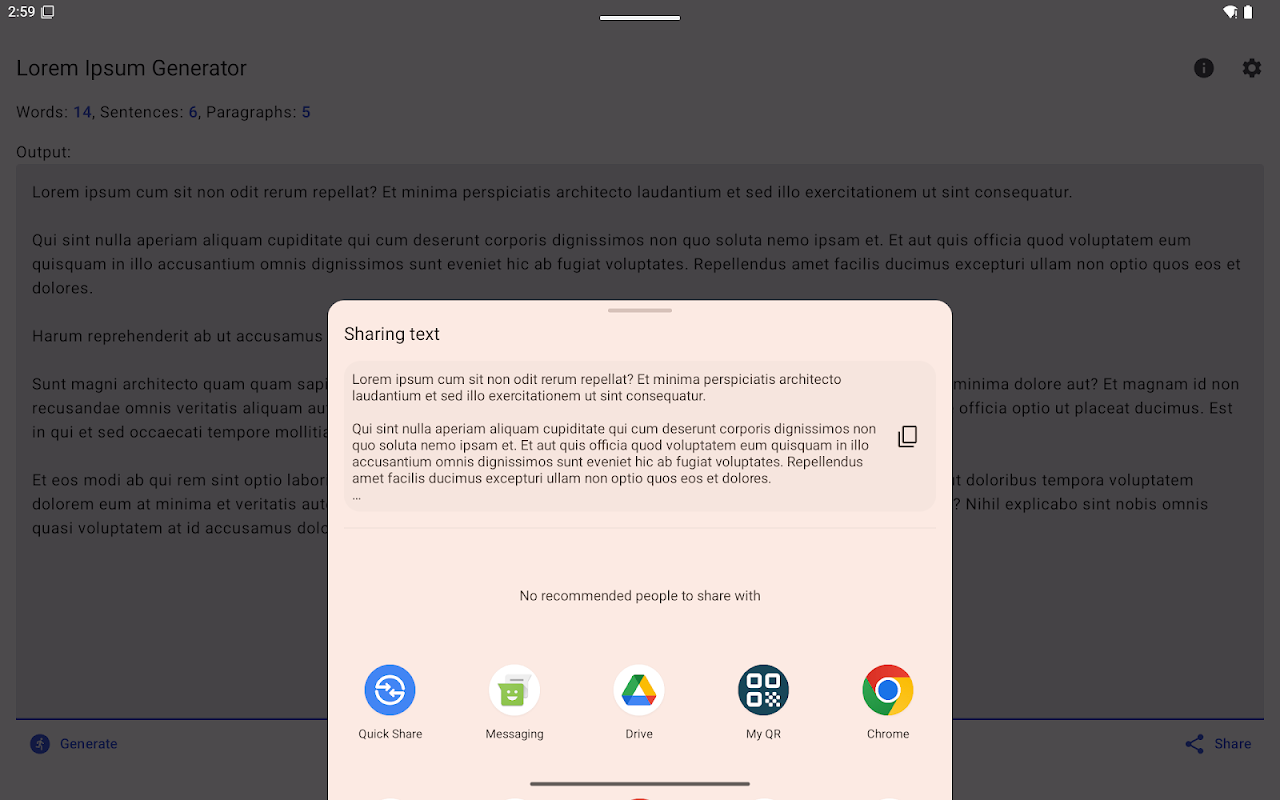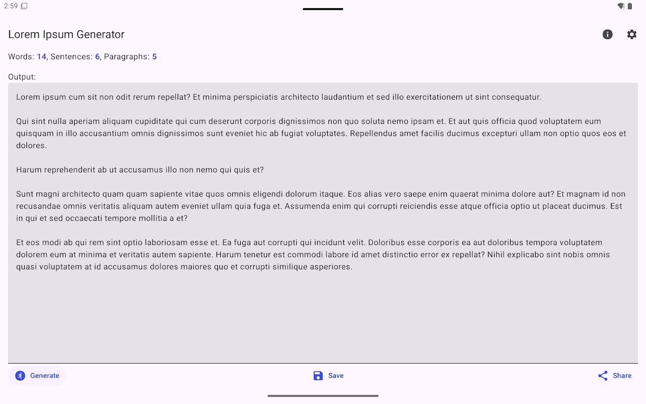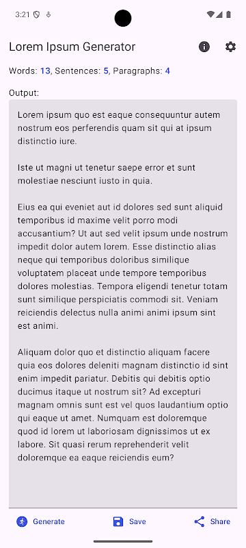एंड्रॉइड उपकरणों के लिए प्रमुख लोरेम इप्सम जेनरेटर का परिचय! ऐप द्वारा तैयार किए गए शब्दों, वाक्यों और पैराग्राफों की संख्या पर पूर्ण नियंत्रण के साथ अद्वितीय लचीलेपन का अनुभव करें। अपनी रचनाएँ सहजता से साझा करें या उन्हें सीधे फ़ाइल में सहेजें।