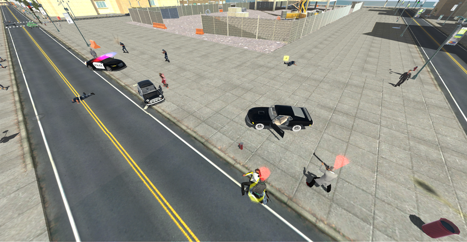 - डकैती और रेसिंग के तत्वों के साथ 3 डी शूटर