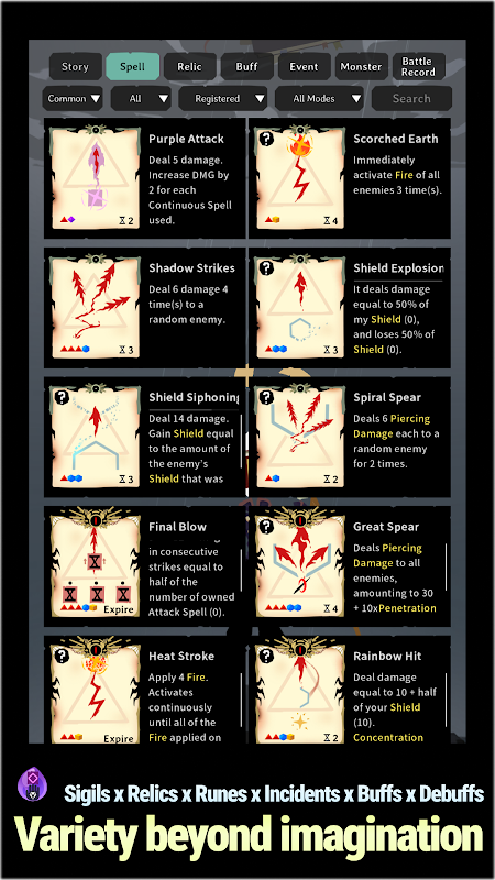 लॉस्ट पेजेस में विभिन्न जादुई वृत्तों, कलाकृतियों और रूनों की अविश्वसनीय संख्या है. उपयोगकर्ता की पसंद के अनुसार, डेक स्वतंत्र रूप से बदलता रहता है. यह विविधता और स्वतंत्रता गेमप्ले को लगातार आकर्षक बनाए रखती है, और उपयोगकर्ता के बढ़ते आँकड़ों के साथ मिलकर, अकल्पनीय रूप से विविध अनुभव प्रदान करती है.