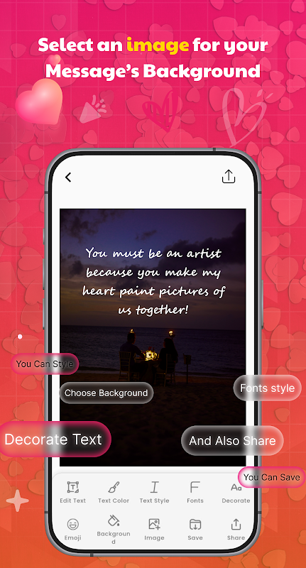 ✔️ उन्नत टेक्स्ट संपादन उपकरण - सुंदर सुबह के प्रेम संदेश या फ़्लर्टी टेक्स्ट तैयार करने के लिए फ़ॉन्ट आकार, रंग और संरेखण समायोजित करें।