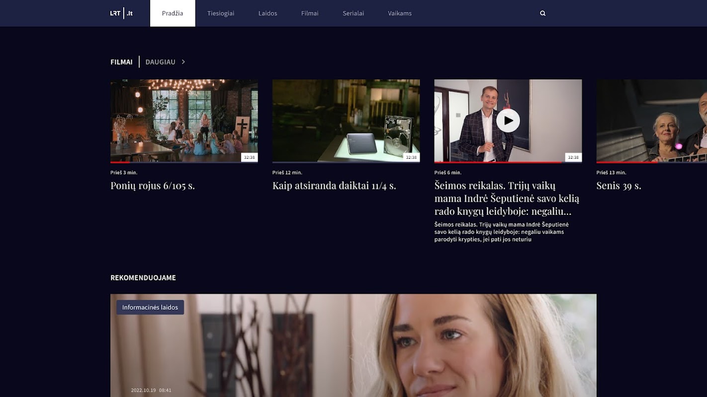LRT मोबाइल एप्लिकेशन के साथ, LRT.lt पोर्टल पर प्रसारित सभी सामग्री देखें।