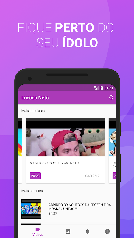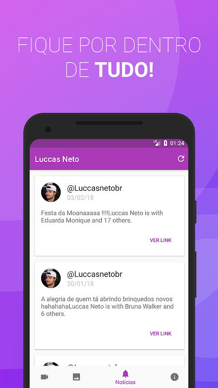 App com todas as redes sociais do Luccas Neto em um só lugar. Facebook, Instagram e Youtube.