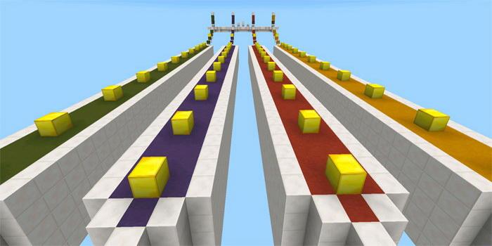 Map Race Lucky Block is a cool mini game for Minecraft PE, which must involve three players! Here are the lucky blocks that will spawned everything from enchanted swords, and ending with the lighted blocks TNT and creeper. You have to find the way to the race track, and then start the competition against another player in the battle arena.