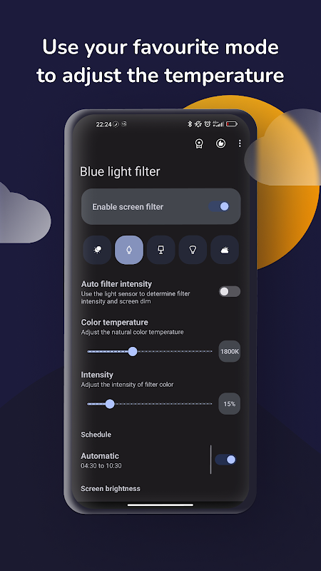 - प्रीसेट फ़िल्टर चुनें या अपनी पसंद से ब्लू लाइट को कम करने के लिए अपना फ़िल्टर बनाएं।