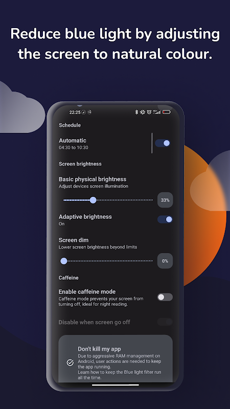 LumiGuard: नाइट मोड के साथ रात में स्क्रीन का अधिक आरामदायक उपयोग करें। कम रोशनी वाले वातावरण में आंखों की थकान को कम करने के लिए स्क्रीन के रंग तापमान और चमक को समायोजित करें।