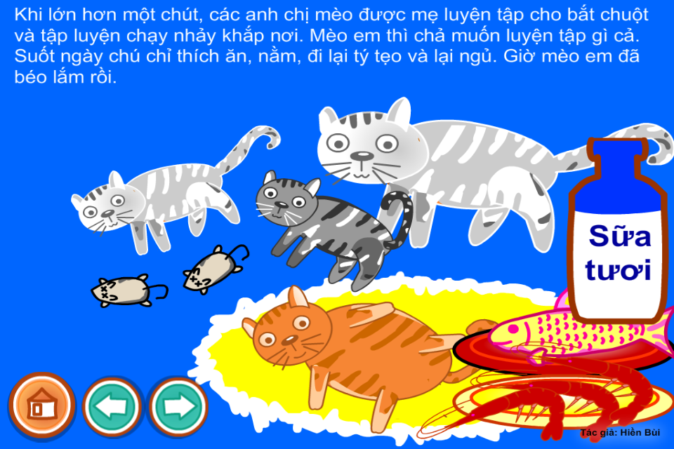 Truyện kể cho bé "Mèo con lười biếng". Hoàn toàn miễn phí, không in-app-purchase.