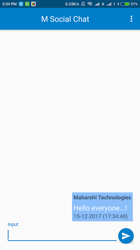 M Social Chat App is designed for Every one to chat with online friends, ex: who ever installed this app can chat with other person, even you can chat with unknown persons as well. This app is designed to make new friends.