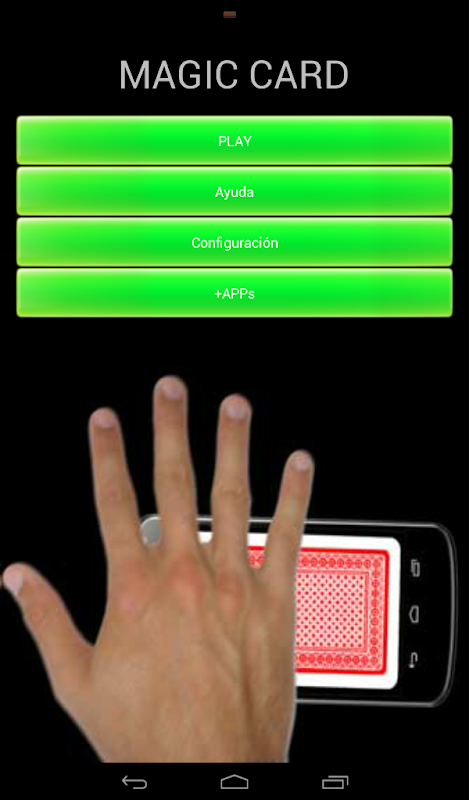 Juego de magia en tu android. Consiste en pasar la mano por encima de la pantalla, sin necesidad de tocarla, y la carta girara Mágicamente.