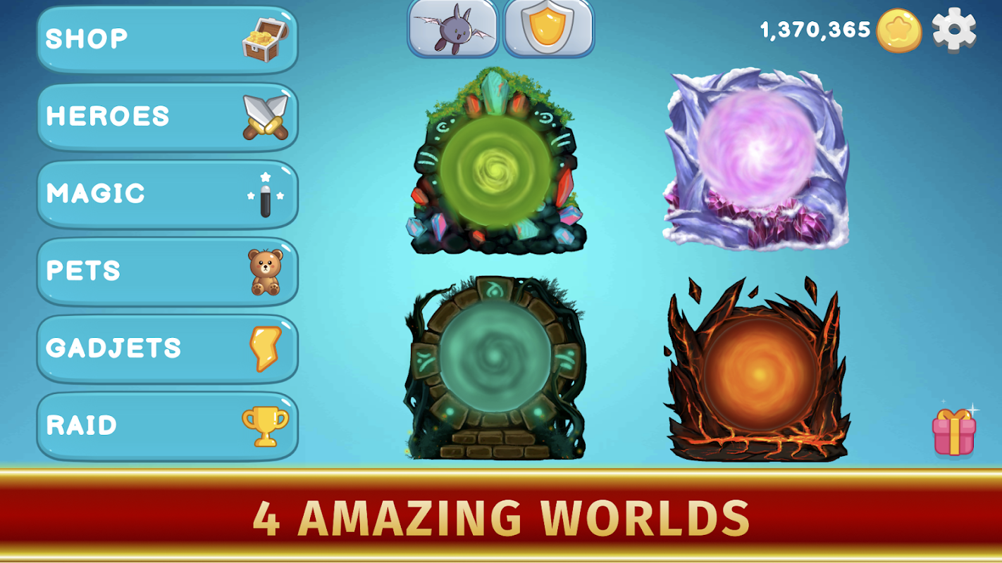 आप अपने नायक को बढ़ाने के लिए एक पालतू जानवर खरीद सकते हैं। कुल तीन हैं और वे सभी अलग-अलग हैं: एक सिक्के एकत्र करने में मदद करता है, दूसरा दुश्मनों पर हमला करता है, तीसरा ठीक करता है। उनमें से प्रत्येक को अपग्रेड किया जा सकता है। आप एक स्तर को पार करने के लिए उनमें से केवल एक को चुन सकते हैं।