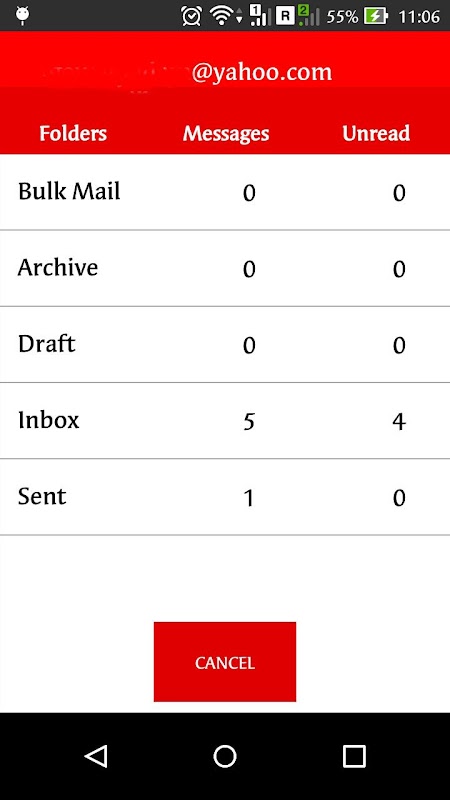 Displays folder name, total messages and total unread emails.
