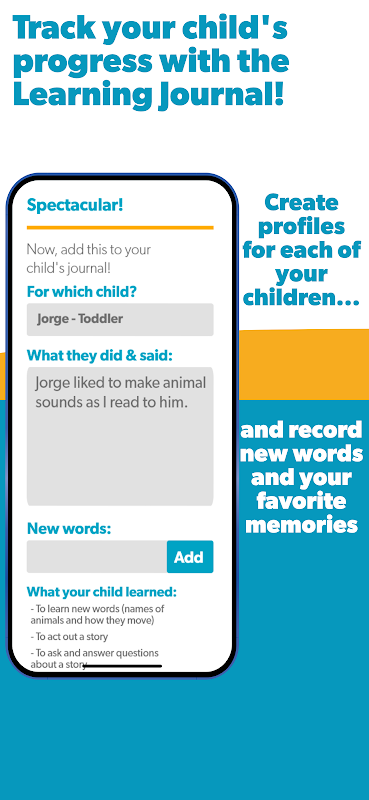 Now, after marking a book or an activity "done," you will have the option to make a journal entry for your child, so that you can look back on what you have done together and see what your child has learned. You can also add new vocabulary words to your child's Paula Palabras word log.