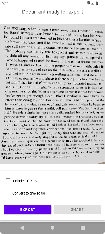 MakeACopy एंड्रॉइड के लिए एक ओपन-सोर्स डॉक्यूमेंट स्कैनर है जो आपको कागज़ के दस्तावेज़ों को पूरी तरह से ऑफ़लाइन डिजिटल करने की सुविधा देता है - डिवाइस पर OCR, बिना किसी विज्ञापन और बिना किसी ट्रैकिंग के।