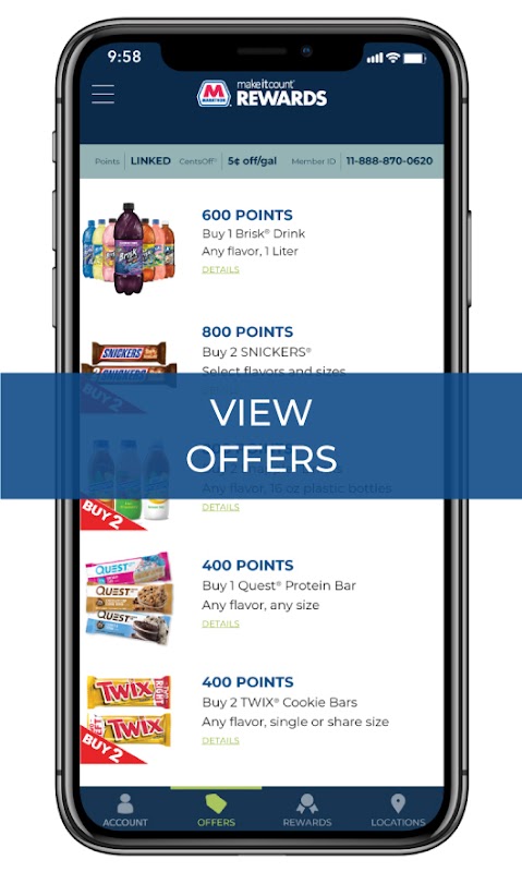 MakeItCount™ रिवार्ड्स एक निःशुल्क और उपयोग में आसान रिवार्ड प्रोग्राम है जो भाग लेने वाले मैराथन और एआरसीओ स्टेशनों पर ईंधन और इन-स्टोर खरीदारी पर आपको पैसे बचाता है।