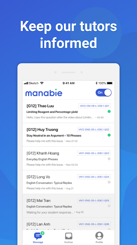 ट्यूटर्स के लिए मैनाबी हमारे शिक्षार्थियों को एक व्यापक सीखने का अनुभव प्रदान करने के उद्देश्य से "मानबी फॉर लर्नर" का एक साथी ऐप है।