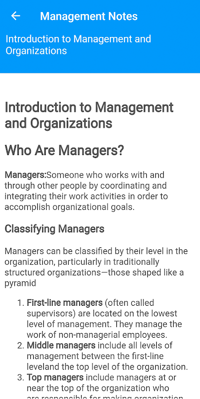 आप इस ऐप का उपयोग करके आसानी से मैनेजमेंट नोट्स सीख सकते हैं। यदि आप प्रबंधन नोट्स में रुचि रखते हैं, तो प्रबंधन के बुनियादी सिद्धांत सीखना बहुत आसान है। इस ऐप में प्रबंधन नोट्स और ट्यूटोरियल के मूल सिद्धांत हैं।