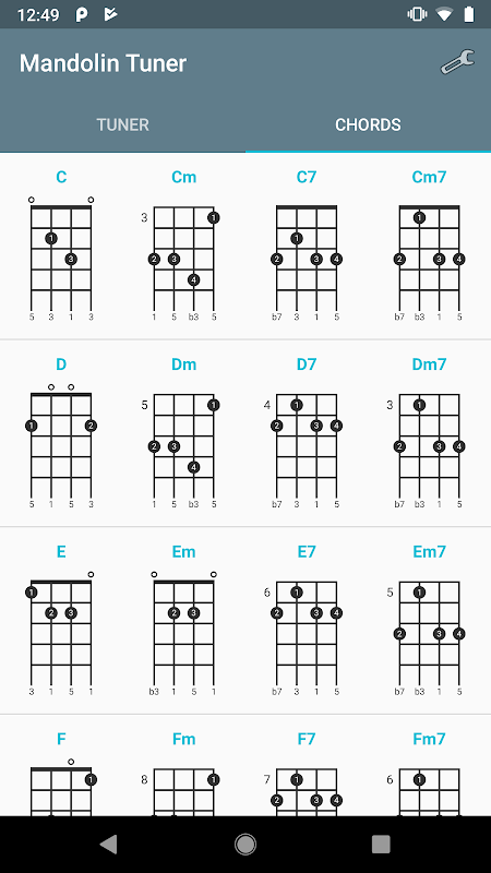 मैंडोलिन ट्यूनर और कॉर्ड्स