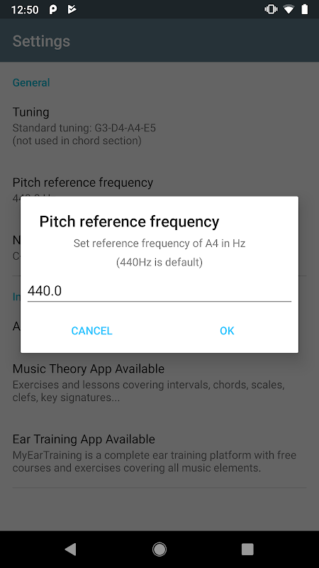 समायोज्य संदर्भ नोट आवृत्ति (A440)।