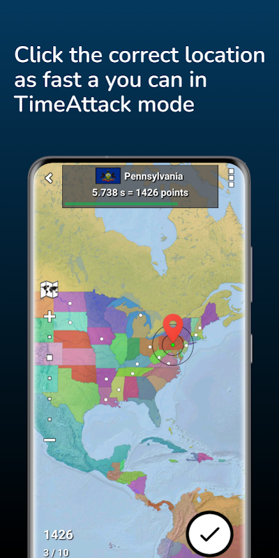 टाइम अटैक: देशों, राज्यों, नदियों, झीलों और बहुत कुछ का पता लगाने के लिए घड़ी के खिलाफ दौड़ें।
