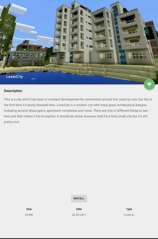 सबसे लोकप्रिय Minecraft PE मैप्स चलाने के लिए इस ऐप को इंस्टॉल करें। अपनी पसंद का नक्शा चुनें और एक क्लिक से इंस्टॉल करें। सब कुछ सरल और आसान है।
