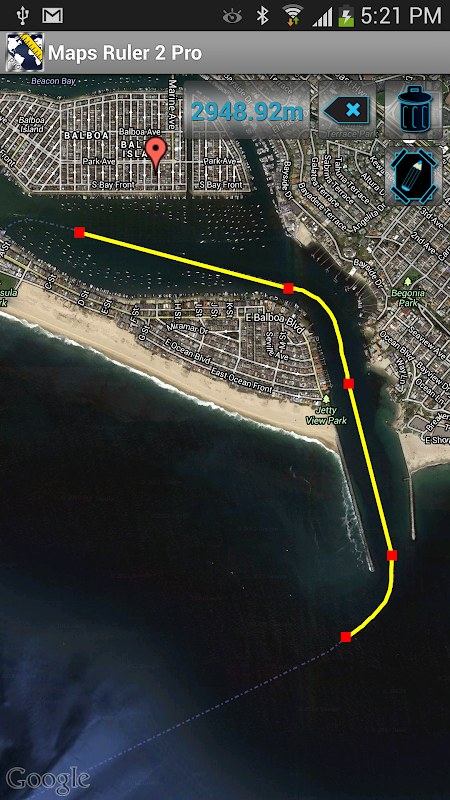मैप्स शासक आप चयनित अंक के बीच दूरी की गणना करने के लिए मदद कर रहा है।