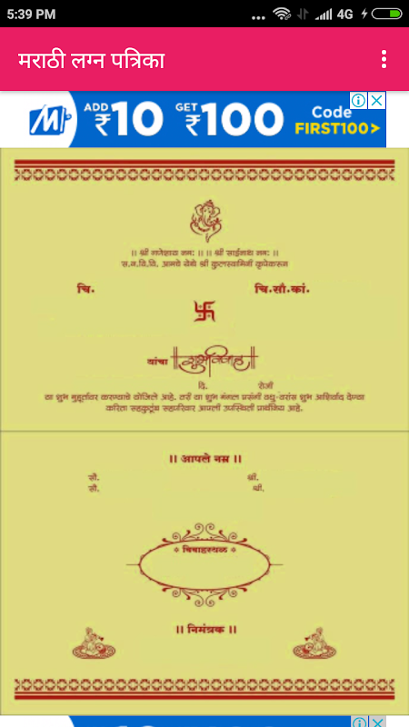 मराठी LagnPratika -मराठी लग्न-पत्रिका नमूना लग्न पर्तिका