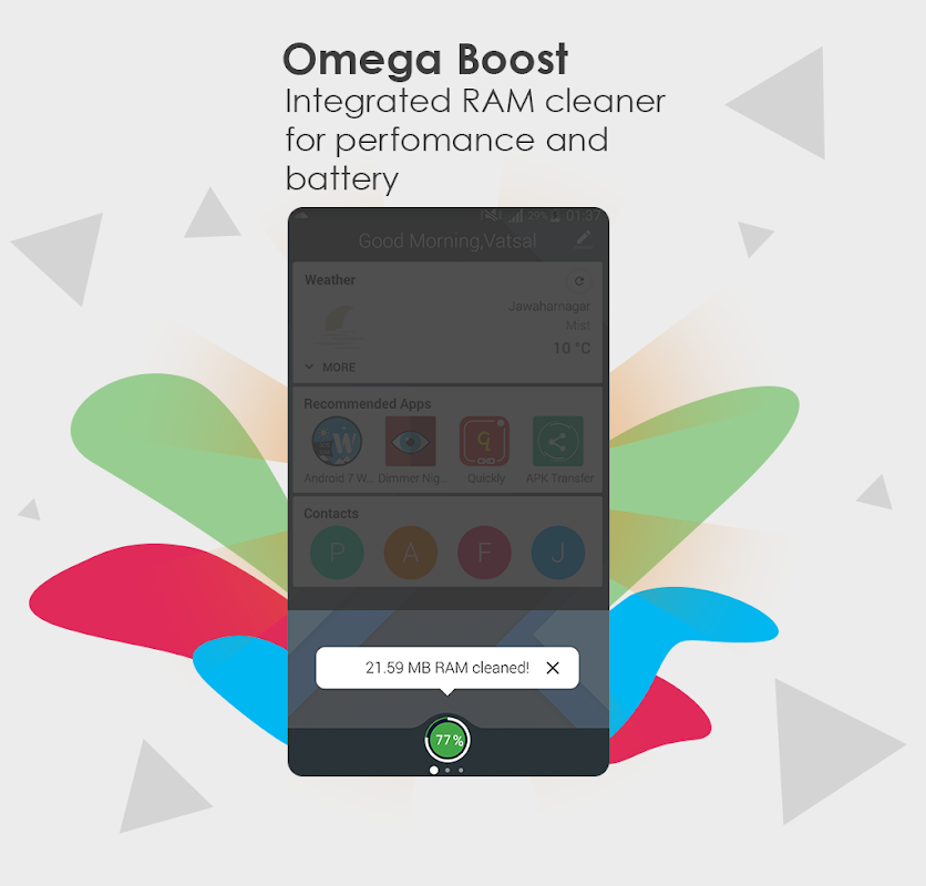 ओमेगा लांचर लॉलीपॉप (5.0) से नीचे कम स्मृति के उपयोग के साथ उपकरणों के पूर्व करने के लिए उपयोगकर्ता अनुभव की तरह सामग्री डिजाइन विषय प्रदान करता है Marshmallow थीम के साथ अपने फोन के लिए एक marshmallow अद्यतन दे।