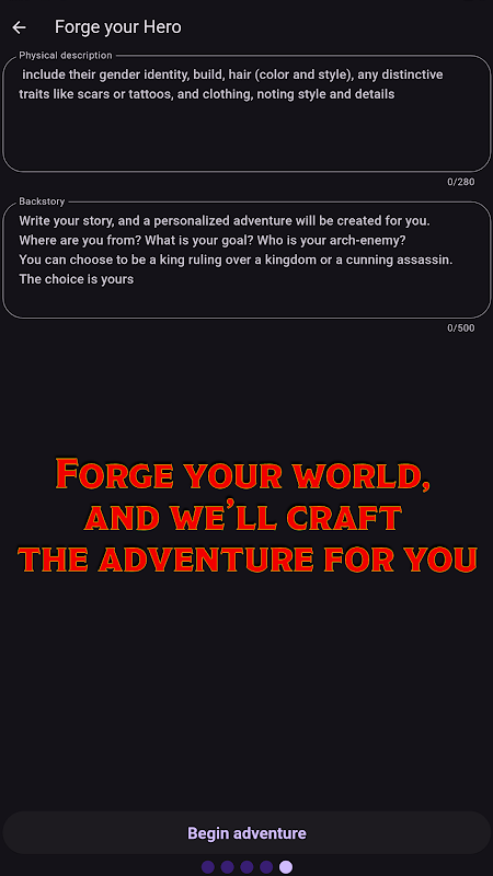 🗡️ अपना अनूठा रोमांच बनाएँ: अपने चरित्र को गढ़ना शुरू करें, अपनी पृष्ठभूमि से शुरू करें जो पहली बार किसी रोल-प्लेइंग गेम में आपके रोमांच के पाठ्यक्रम को महत्वपूर्ण रूप से प्रभावित करेगी। क्या आप एक बहादुर योद्धा, एक चालाक जादूगर, या शायद एक सीमावर्ती शहर के बुद्धिमान गवर्नर हैं? चुनाव आपका है, आप जो चाहें लिख सकते हैं और अपना इंटरैक्टिव रोमांच चुन सकते हैं।