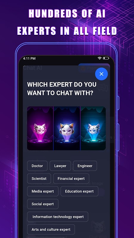 उन्नत AI उपकरण अति-यथार्थवादी AI व्यक्तित्वों (वित्तीय विशेषज्ञ, वैज्ञानिक, पोषण विशेषज्ञ, डॉक्टर, आदि) के साथ चैट करते हैं।