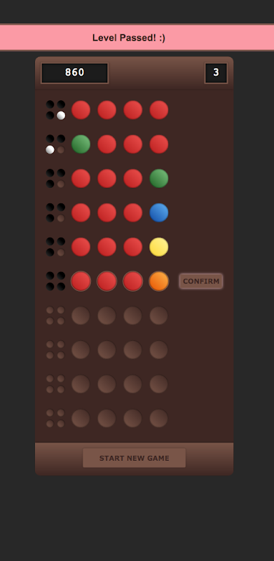 Guess the combination of the hidden colors. Make some attempts and try ..