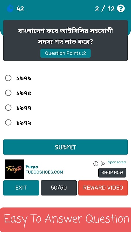 Each question is to be answered within 45 seconds. For every correct answer you provide you earn Rewards Points. The points you earn can be redeemed for cash deposits to PayPal, Bkash, Rocket,Nagad and other.