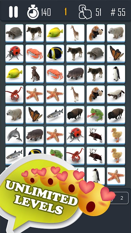 स्तर से विशेषज्ञ स्तर बनें। खेल में असीम स्तर है। सुंदर जानवरों, फलों और खेल की अन्य प्यारी श्रेणियों का मिलान करें।