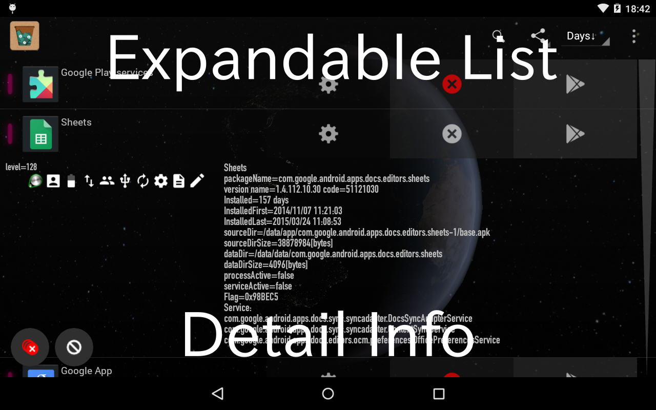 - Enable/Disable list buttons of App Launch, App Info, App Uninstall, Goto Goggle Play and Amazon App store.