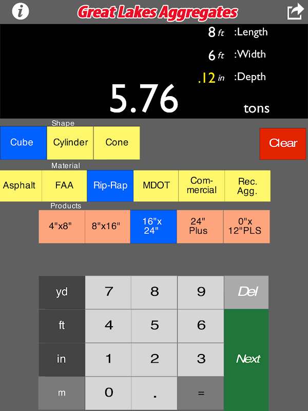 The Great Lakes Aggregate calculator quickly estimates the material weight for over 20 Limestone, Recycled Aggregates, Rock Recyclers and Sylvania Minerals.