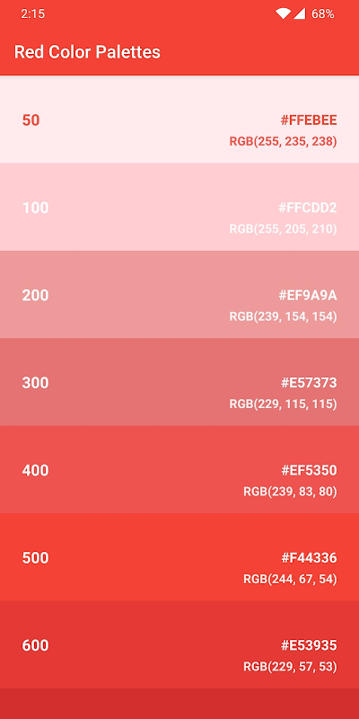 Also RGB Code is shown for all color palettes, in case you need it.