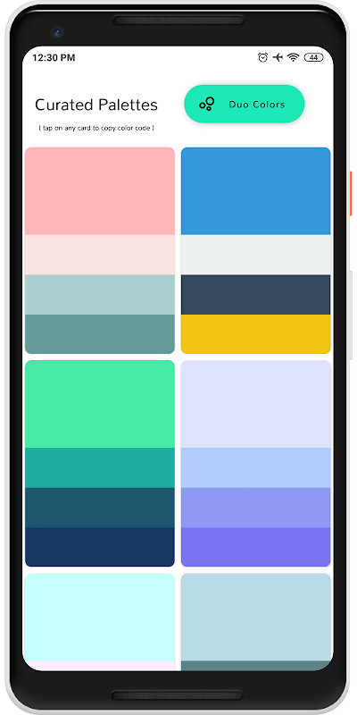 एप्लिकेशन में सामग्री के रंगों का संग्रह है। जो आपको किसी भी परियोजना के लिए सबसे अच्छे रंगों की आसान उपलब्धता प्रदान करता है, इतने छोटे ऐप के आकार में प्यार से भरा हुआ।