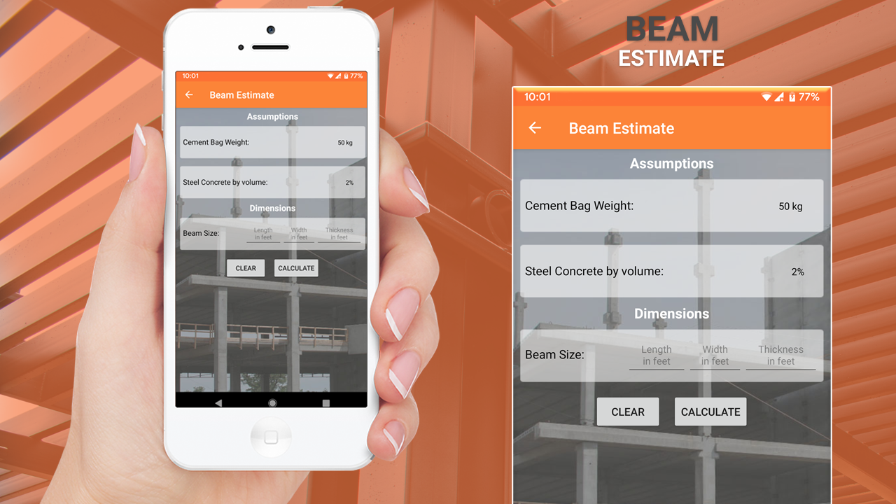 सभी सामग्रियों और निर्माण सामग्री की गणना सटीक सूत्रों के साथ की जाती है। आप इस एप्लिकेशन के साथ इंच और पैरों में किसी भी सामग्री की लंबाई को माप सकते हैं। आप आसानी से अपने घर और सामग्री अनुमानक-गणना कर सकते हैं आप निर्माण सामग्री की कीमतों और निर्माण के लिए उपयोग की जाने वाली सामग्रियों की मात्रा की सटीक गणना करते हैं। निर्माण में उपयोग की जाने वाली निर्माण सामग्री की गणना के लिए एक अनुमान लगाएं। सामग्री अनुमानक- आप भवन निर्माण सामग्री की गणना करें यह भवन निर्माण और विद्यालयों के निर्माण में बहुत सहायक है।
