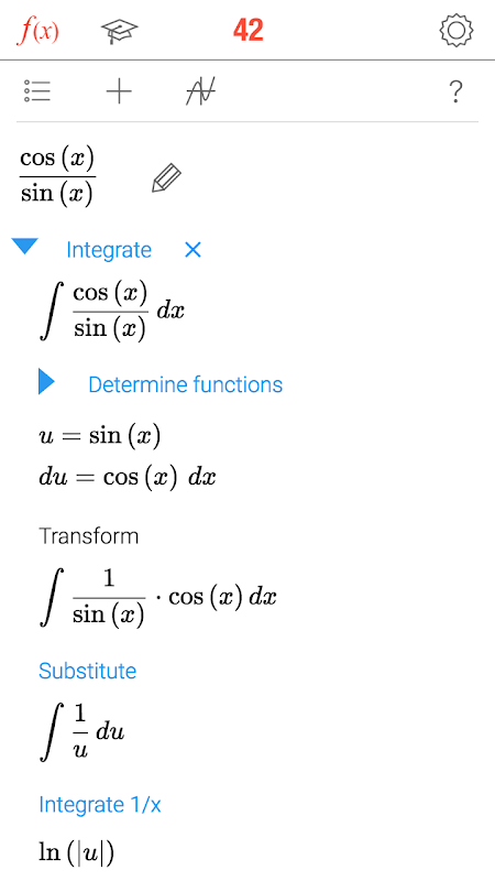 गणित 42 उनकी गणित की समस्याओं को हल करने और एक निजी ट्यूटर की लागत का अंश में बेहतर ग्रेड पाने के लिए 2.200.000 मध्यम स्कूल, हाई स्कूल और कॉलेज के छात्रों पर मदद करता है। गणित 42 (1) के समाधान के लिए बुद्धिमान दृष्टिकोण के साथ मदद करता है, (2) कदम-दर-कदम उनकी समस्याओं का समाधान (3) एक मूल्यांकन केंद्र।