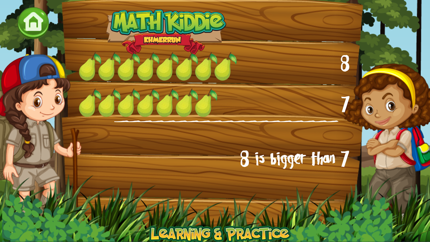 The application will guide with four features– Addition, Subtraction, Multiplication and number comparison. Each feature consists a number of fruits, vegetables, color block for kids to count. It helps kids how to do some basic math and comparison of numbers.
