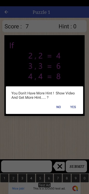 This math puzzle contains 5 levels and every single level have 15 mathematical puzzles. You can go to the next level only by solving each separate level. Every level have also fixed number of hints, so you can use it whenever you get stuck in any puzzle.