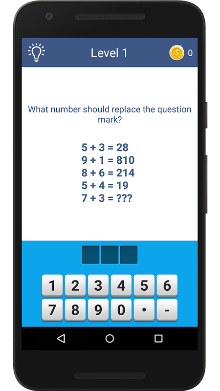 Try to concentrate and choose the right number so you can solve the puzzle and advance to the next level. If you give the correct answer you will get coins and at the end you will get a title based on the result.