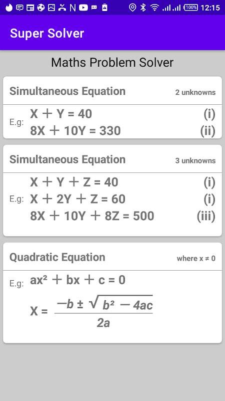 यह ऐप आपको अधिकांश समीकरण को हल करने में मदद करता है और आपको उन्हें हल करने के तरीके का मार्गदर्शन करता है।
