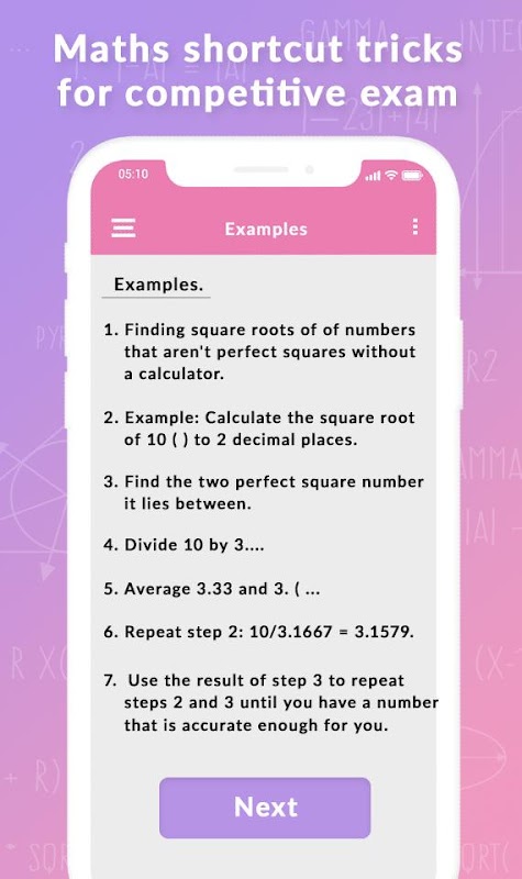 Math Tricks is bring you the most entertaining practices and exercise to test and enhance your math skills. It is the best free and cool maths solutions for any question ever. Our app will let you master maths quiz games and learn many maths questions solving app to improve your skills in a very easy, fun and amazing way while surfing over the greatest brain challenging math learning app. Math workout has been meticulously designed not just to share the maths word problem solver but to give you an amazing workout with maths equation solver to help you master calculation using maths equations the left to right approach for maths easy tricks app. Most of the techniques shared in this maths reasoning app are based on vedic math tricks that help in mental calculations.