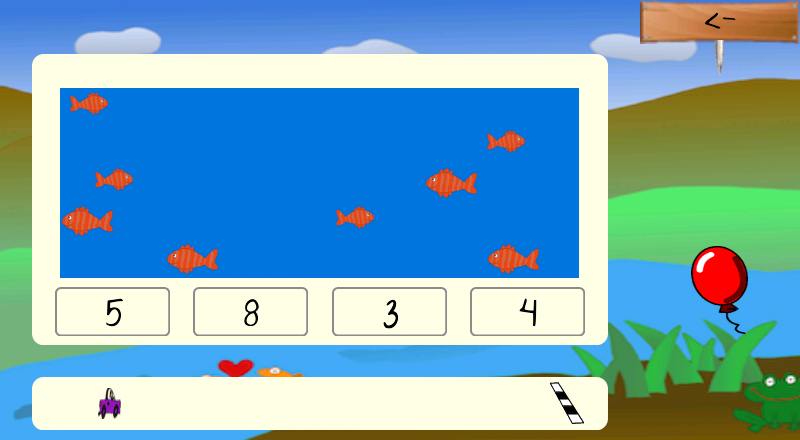 Level 1: Starts with the understanding of the numbers from 0 to 12. The games are "memory" where the numbers are visible, counting fishes and a number line.