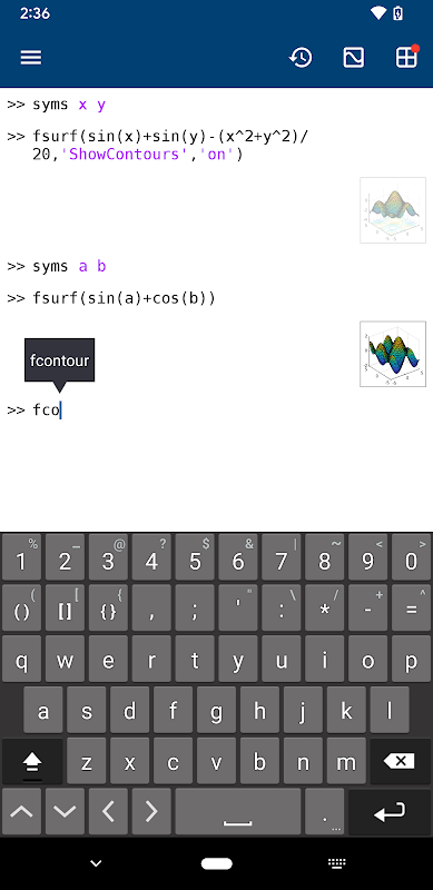 • विशिष्ट MATLAB सिंटैक्स दर्ज करने के लिए कस्टम कीबोर्ड