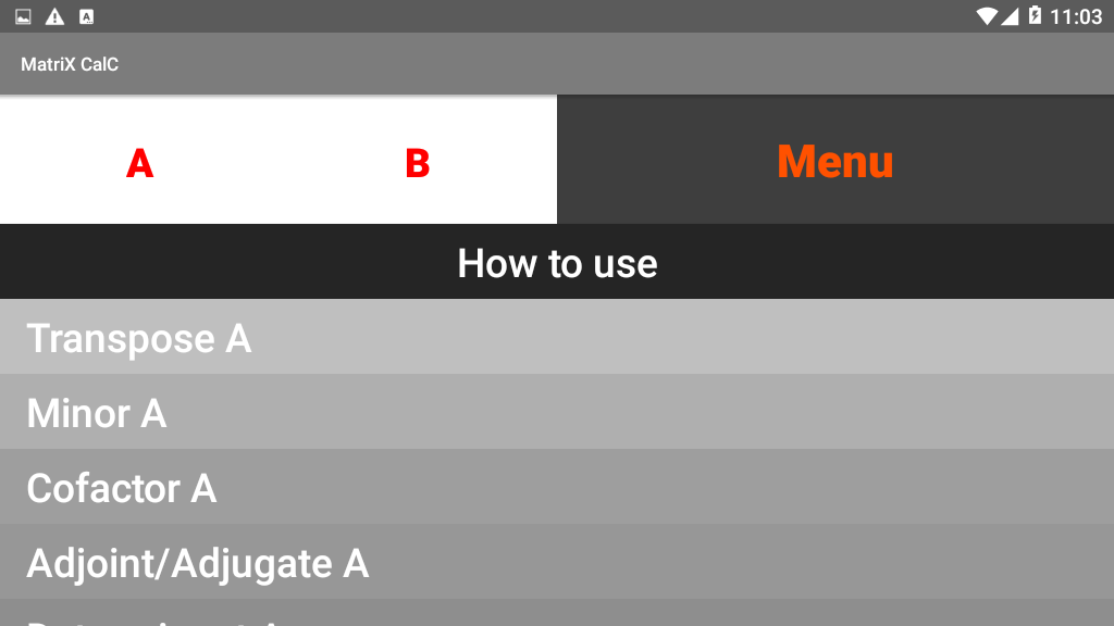 MatriX CalC शिक्षा के लिए एक बुनियादी मैट्रिक्स कैलक्यूलेटर है।