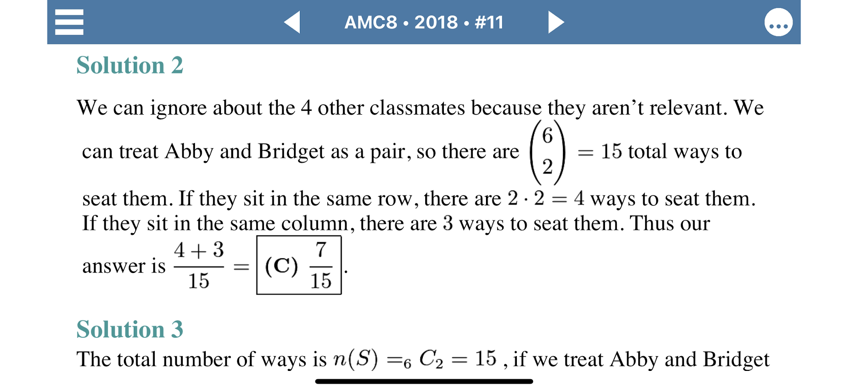समस्याओं और समाधानों को कालानुक्रमिक क्रम में प्रस्तुत किया जाता है, प्रत्येक वर्ष 25 समस्याएं और उनके समाधान अलग-अलग पृष्ठों पर होते हैं। समझने में आसान और सहज उपयोगकर्ता इंटरफ़ेस आपको अपने गणित कौशल का अभ्यास करने और इस तरह की भविष्य की परीक्षाओं के लिए खुद को तैयार करने की सुविधा देता है।