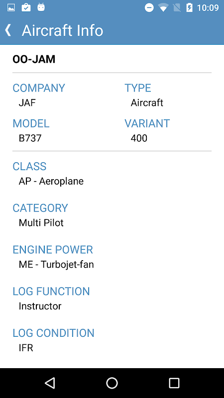 वास्तविक उड़ान समय, विमान पूंछ, पीएफ और / या चालक दल के नाम जहाज पर विमान के साथ उड़ान रिकॉर्ड पूरा करने के लिए एंड्रॉयड एप्लिकेशन का उपयोग करें, और पूरा रिकॉर्ड mccCLOUD सिंक के माध्यम से डेस्कटॉप के लिए वापस लौट आते हैं।