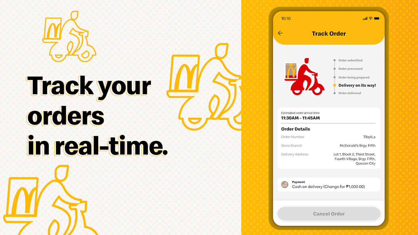 Near a McDo? Choose the pick-up option and save time. You can track your order with our updated Order Tracker and get real-time help through Live Chat. We’ve made cashless payments smoother with an improved user experience for a more seamless checkout.