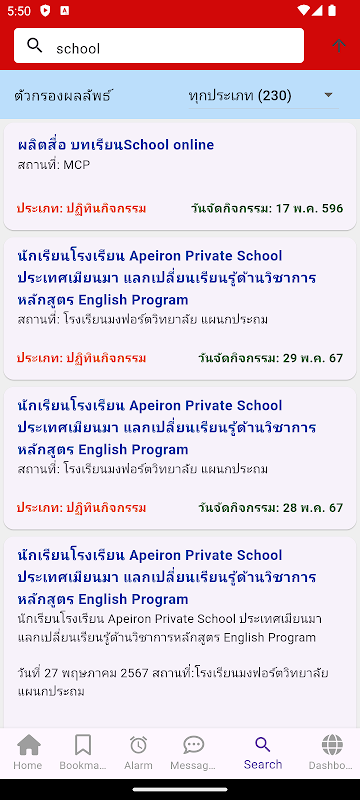 - แสดง Timeline ความเคลื่อนไหวต่างๆ ในระบบสารสนเทศของโรงเรียน